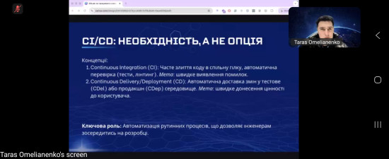 11 лютого о 17:00 студенти взяли участь в онлайн-вебінарі Open IT, присвяченому сучасним підходам до організації командної розробки та впровадженню CI/CD.