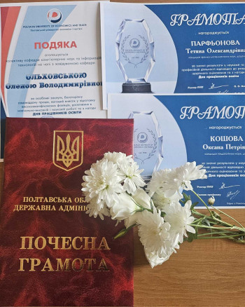 За багаторічну сумлінну працю, вагомий внесок у підготовку висококваліфікованих фахівців, досягнення в освіті та науці, а також активну громадську позицію, Почесною Грамотою Полтавської обласної державної адміністрації нагороджена Олена Ольховська.