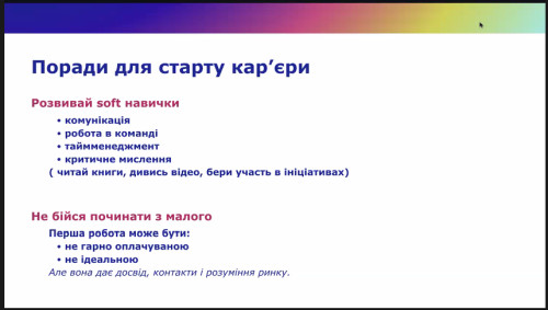 Особливу увагу було приділено практичним порадам щодо нетворкінгу та побудови першого професійного контакту з роботодавцем.