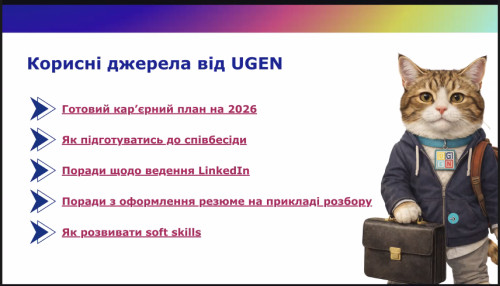 20 березня 2026 року студенти освітньої програми «Комп’ютерні науки» долучилися до онлайн-вебінару від команди UGEN, присвяченого ефективному використанню кар’єрних заходів для старту професійного шляху.